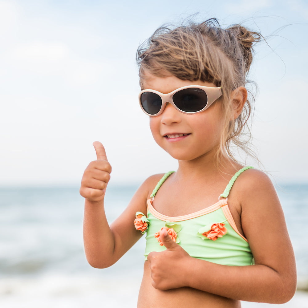 Ces lunettes de soleil sont parfaites pour les petits enfants. Très robustes et flexibles – elles tiennent même si on les enfile en jouant. La taille est parfaite pour notre fils de 2 ans et il pourra sûrement les porter encore longtemps.